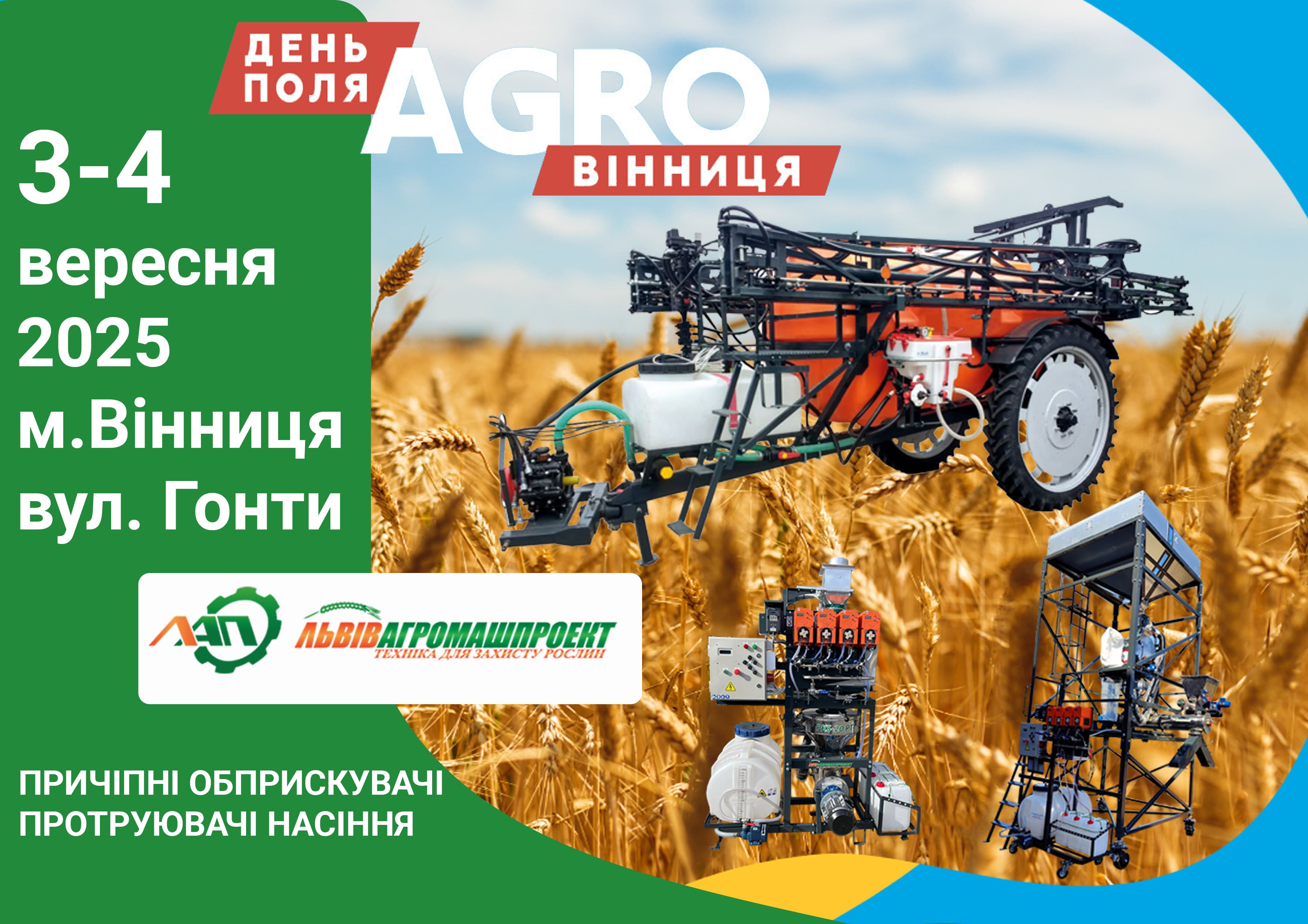 День Поля "АГРО ВІННИЦЯ" 2025 відбудеться 3-4 вересня у Вінниці. Це масштабний аграрний захід, який традиційно об'єднує представників аграрного сектору з усієї України. Захід відбуватиметься на вулиці Гонти.